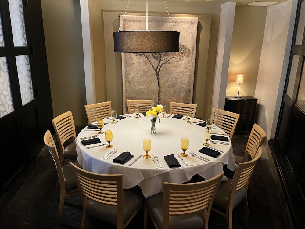Capacity: Up to 10 guests at round table, perfect for your Board Meeting or Family Celebration!
